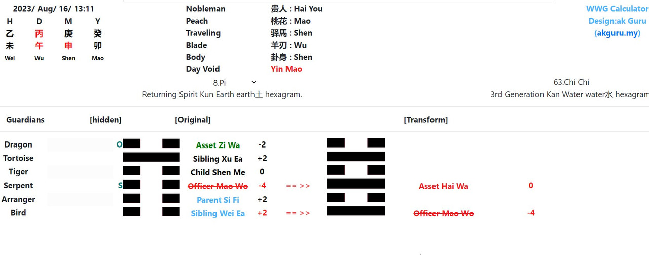 It's because you missed out on some of the rules for Void/Empty. Which would have altered the reading.1. Void cannot support others. Neither can it be supported others.A. Unless it exists within the Month (as it is impossible for it to be Void and exist within the Day).B. It is being Clashed by the Day whilst being supported by a third party (Month, Moving Line that can Support, etc)Within your reading, whilst there is support within the day. It would have been the same as a Botanist trying to save a patient. The Botanist is trained and recosnises the concepts needed to save the patient. But in the end, it simply isn't viable.Within the interactions, there was simply no support helping the animal. You had the animal (Focus) not able to receive help (Void). You had a moving line (Wu, 4th line) that attacked (and capable of doing harm, because it had the power of the Month behind it) the Focus. This is not a sign of fortune and safety for the Focus.
