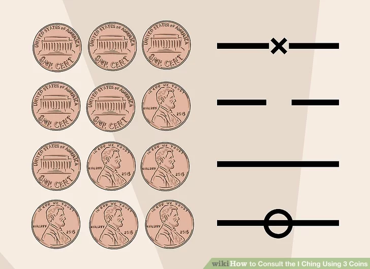 * 8 (2 heads, 1 tail) is considered an unchanging yin and is drawn as a broken line.