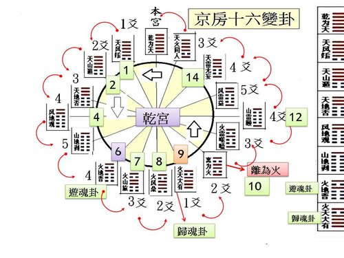 1.  The initial Hexagram 13 and producted one 56 both are in Li palace ... this is bad when reffering with "tomb" or "returning soul "