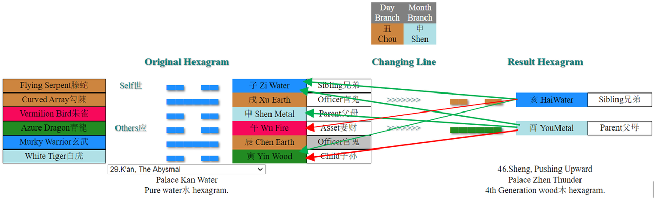 - The original hexagram has an influence on the second hexagram? that is, if it is capable of imposing some of the relationships of the Wu Xing (sheng, ke, drain, etc.)