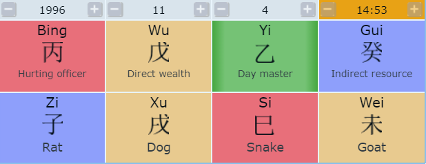 I am looking forward comparing the BaZi charts of friends and family and seeing just how frequent this sort of overt symbolic overlap is.