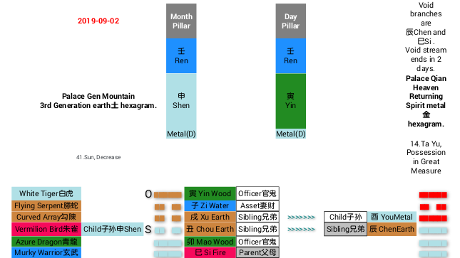 1c. On this case Child Shen  (fushen) is free due to (feishen ) boundance with 5th unmoving Wealth Zi line and clashes with Other 6th ghost officer yin line  ...