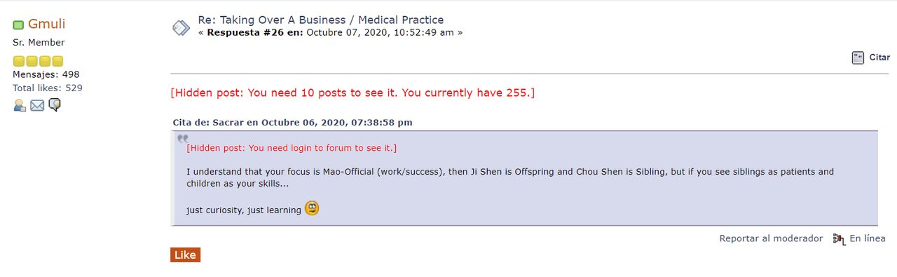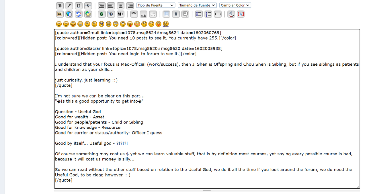 I have trouble seeing the messages of those users who decide to put the post hidden or hidden by number of posts. The only way to see them is by clicking on the quote function, and there I can see them but some characters come out weird like interrogations, exclamations, quotes... all special symbols...