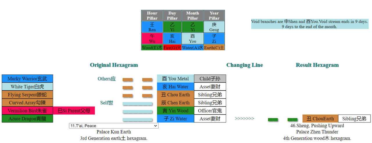 And it would brake at either Wei hour(Wei clashes Chou - they let it go), or if we use True Solar Time then at the same Wu hour(Wu clashes Zi, the combination is broken).