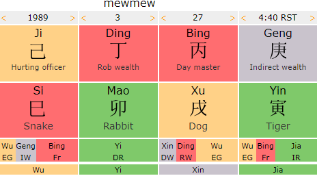 bazi-calculator.comThis LP Geng Wu (2011-2021) is when Jie Cai (Rob Wealth) from your chart arrives, which is not a desired element in your chart.