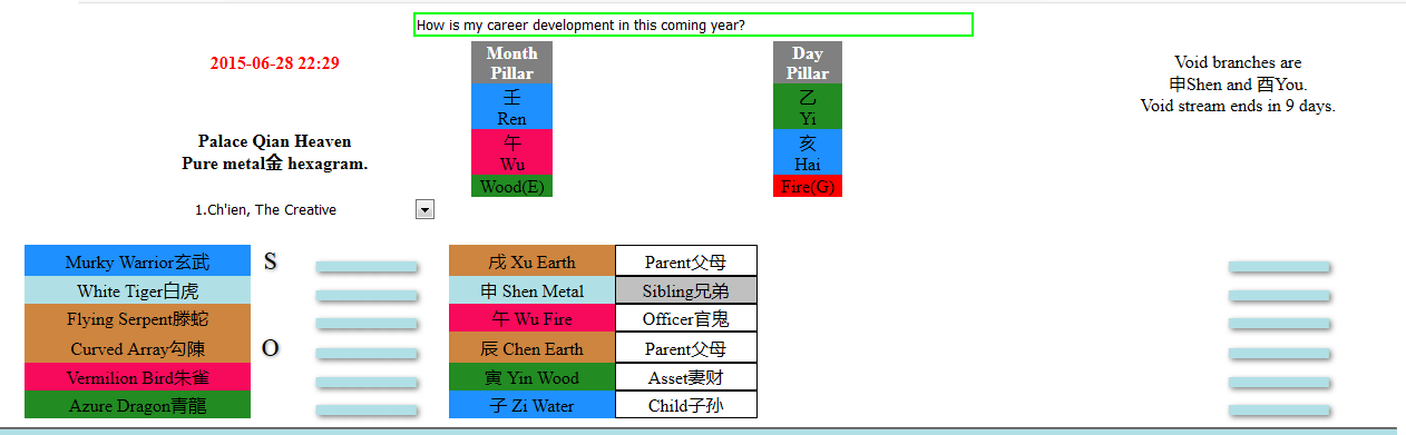 2. Asset-Yin holding bird is hidden moving, line 5 in empty condition. But clash-hexagram again make all becoming moving-line, line 5 void-filled.➡️ This year Shen-month, there will be an unexpected financial problem. It is caused by an argument or dispute. Will be affecting income and career.