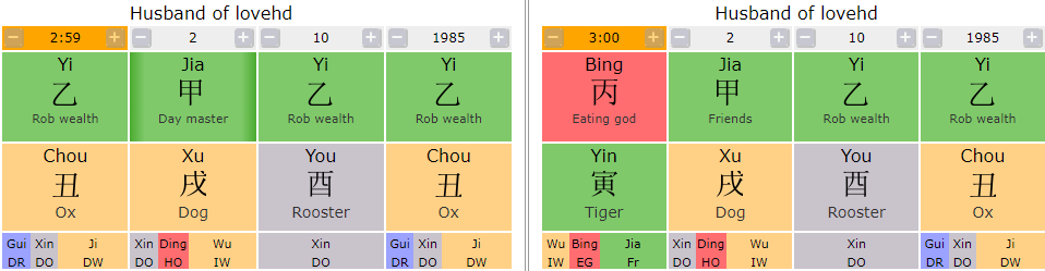 He has relatively strong metal element, DO, in his chart. This implies that he can be quite stubborn/rigid/principled (hidden) and this is going to be rather apparent in the upcoming 10 years with Xin metal appearing in his luck pillar. Due to this, it may affect his relationship with his boss/clients/network/staff.