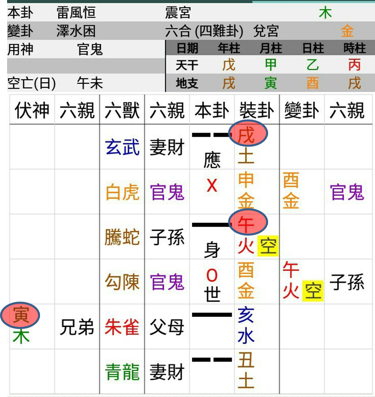 ... Are You estimate (or account) the San He formation of Fire by the Shi/Self changed Wu child yao with the 6th Ying /Other  Xu wealth yao and with the 2nd fu shen Yin brother yao ( .. or  Yin wood EB of the Month) ...  after Kong Wang of Wu child  ??