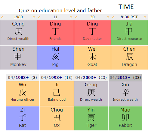 - Please note the order of Bazi pillars: Year-Month-Day-Hour. The second chart is the 10-year Luck Pillars (Bazi)