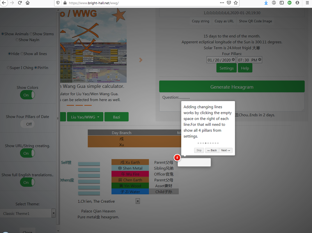 So this will load hexagram 64 with changling line 5 asked today. Any question we ask it will provide string(just click copyURL) and we can send that and it will load that quesiton on that day.