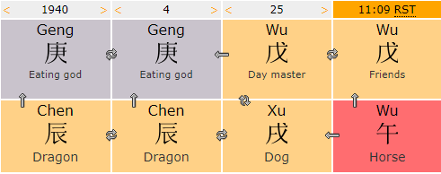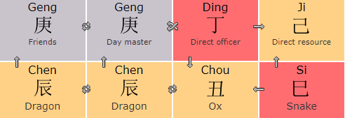 But Zi Harms Wei and Zi breaks Mao. Not a good chart. DM works against himself, trouble making money. Maybe does like like school (poor education).