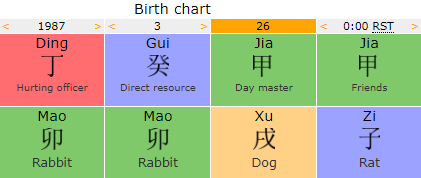 About the Bazi chart, it's very difficult to do an analysis using Bazi, due to the uncertainty of birth timing.